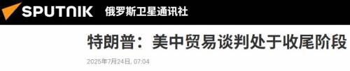 【特朗普声称,美中贸易谈判处于收尾阶段】