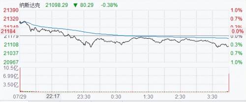纳斯达克指数在高开0.5%之后就开始下跌,收盘最大跌幅超过了0.5%,累计跌幅超过了1%。