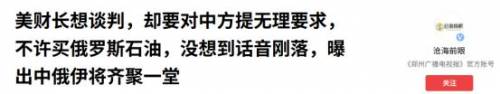 美国财政部长贝森特向中方提出新要求:停止从俄罗斯和伊朗进口石油。这背后的目的并不复杂——特朗普希望通过中美贸易谈判,附加地缘政治条件,迫使中国在能源采购上配合美国对俄制裁。