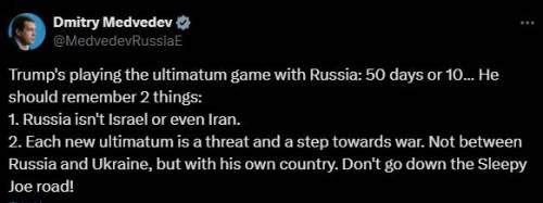 本周五,特朗普给俄罗斯的10天停火期限就要到了,估计在此之前梅德韦杰夫应该会继续保持沉默,观察局势,等待普京本人给出“官方立场”后再做行动。