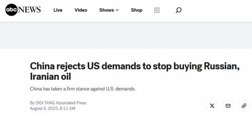 【中国拒绝美国停止购买俄罗斯和伊朗石油的要求】