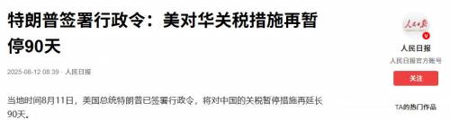 据央视新闻消息,当地时间8月11日,美国总统特朗普已签署行政令,将对中国的关税暂停措施再延长90天。