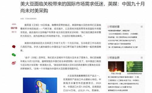 据环球网报道,眼看收获季即将到来,美国的大豆厂商望眼欲穿,却始终没接到中国进口商的电话,一笔订单都还没谈成,随着10月的预购期一天天缩短,这让他们涌起了不好的预感。
