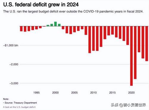 美国每年新增的财政赤字达到2万亿美元,每年光是利息支出就是天文数字,整体债务已经突破37万亿美元了。
