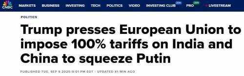 美国总统特朗普在上周撺掇欧洲“对中国经济施压”之后,还要和欧盟商量对中国购买俄罗斯石油“采取二级制裁”。