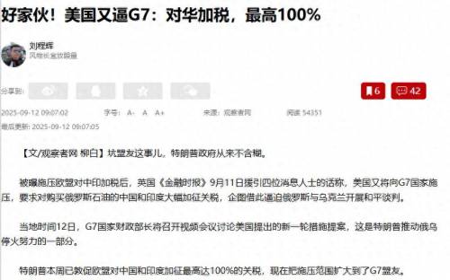 在欧盟没有回应之后,美国很快又找到G7,要求七国集团对中国“征收50%到100%的关税”,现在G7各方也没有回应。