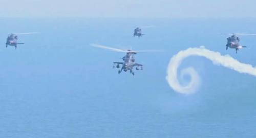 而此次直10机群快速下降1100米,大概率是逼近监视警告,为了压缩外军直升机的挑衅活动空间,形成“目视接触”的威慑态势,要知道现在解放军的武装直升机都是配备专门应对直升机威胁的空空导弹的,对美英舰队的直升机完全构成优势。