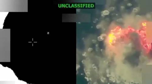 当地时间9月19日,特朗普在其社交平台发布的美军打击委内瑞拉船只视频截图(来源:环球时报)