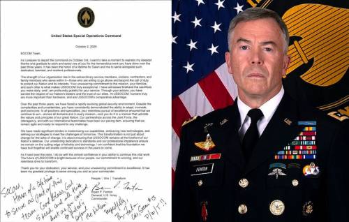 pS:最新的消息,美国特种作战司令部司令布莱恩·芬顿将军也签署了离职信。