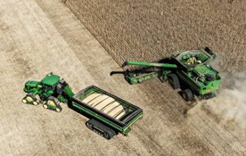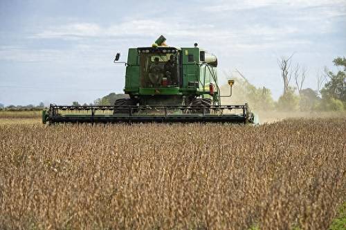 美国威斯康星州沃尔沃斯,田间正在收割的大豆
