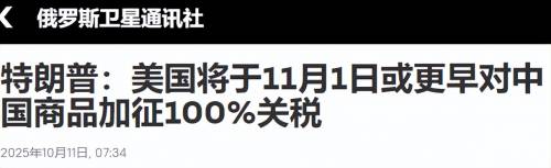特朗普在社交媒体上发文称,美国将对出口到美国的中国商品加征额外的100%的关税,并且对中国实施“关键软件”的出口管制,这些对华报复措施将于11月1日生效。