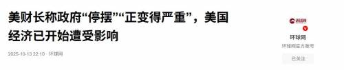 据路透社报道,美财政部长贝森特近日坦承,联邦政府停摆已持续近两周,开始对美国实体经济造成实质性冲击。