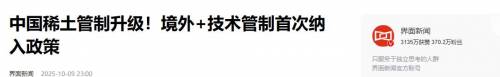 10月9日夜里,中国公布新的出口管制清单,其中涉及的原材料包括稀土、锂电池和人造石墨负极材料等关键产业用原料。