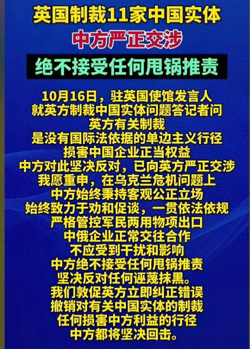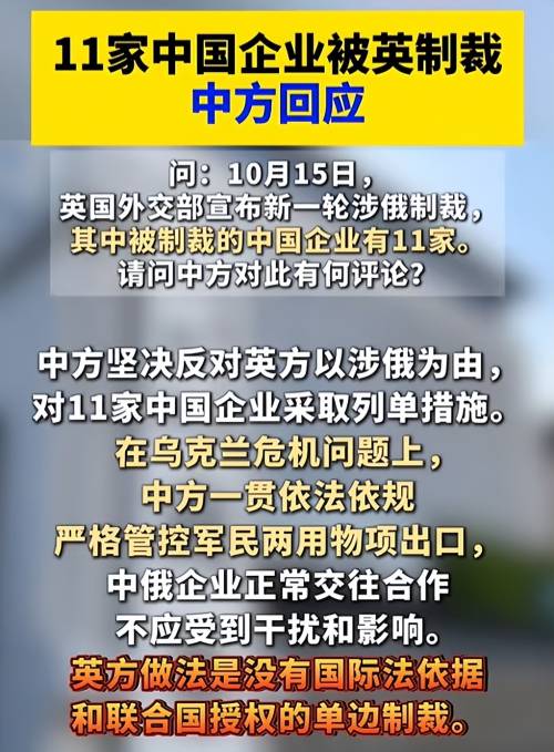 10月15日英国外交部在新一轮涉俄制裁声明中,将11家中国企业赫然列入黑名单,涵盖能源、港口物流及半导体三大核心板块。