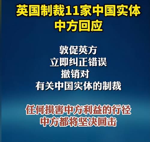 回顾过往案例,2024年英国曾以类似理由制裁3家中国企业,中方通过外交交涉、贸易反制等多种手段,最终迫使英方调整相关措施。