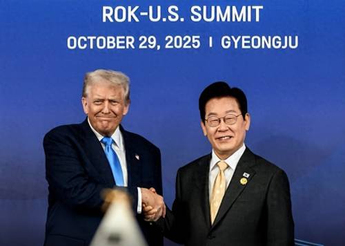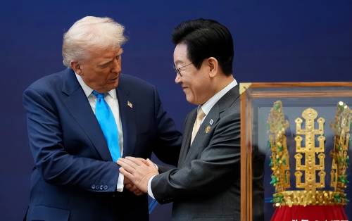 10月29日,特朗普到了韩国,和李在明在庆州国立博物馆谈了谈。