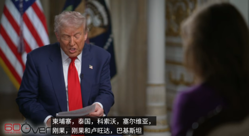 跟着特朗普开始认真朗读宣传单上的内容,从柬埔寨、泰国、科索沃、塞尔维亚,再到刚果、卢旺达、印度、巴基斯坦、以色列、加沙,他如数家珍般的很认真的把自己结束的这些战争,全都朗读一遍