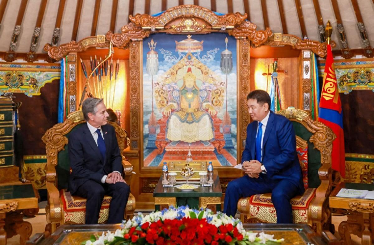 布林肯访蒙,来势汹汹!中国这步棋太致命,美国还想“垂死挣扎”。夹在中俄之间的蒙古,是美国国务卿布林肯这次亚洲之旅的最后一站,为了迎接他的到来,蒙古国总统呼日勒苏赫,总理奥云额尔登,以及外长巴特策策格,相继与布林肯进行了三次官方会晤,如此高规格的谈话,也算是给足了美国人面子。从双方会谈的内容来看,布林肯此次访问蒙古可以说是来势汹汹,即在蒙古国“第三邻国”的战略框架下,进一步加强两国之间的联系,试图压制或遏制中国崛起。