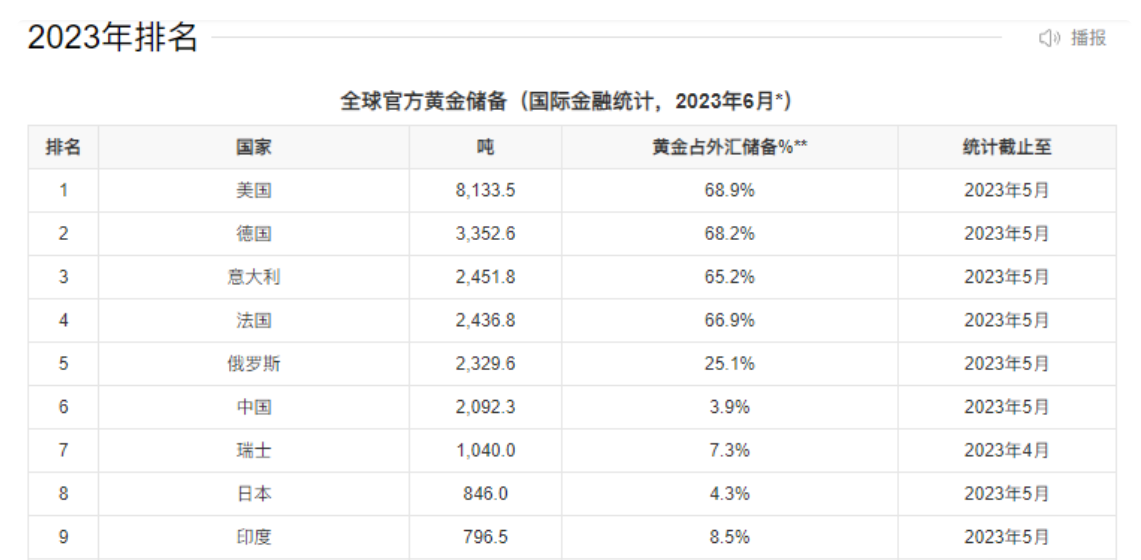 相较于老牌资本主义国家、世界霸主的美国,中国黄金储备量确实不算多,但这也是有原因的。