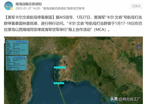 大过年的,美国这个坏透了的国家却偏偏要来“添堵”。此前,美国海军的十万吨级核动力航母卡尔文森号航母已经气势汹汹地驶入了南海海域,并且还在1月17日-18日前后与菲律宾在南海巴拉望岛附近海域搞了一个所谓的“海上合作活动”,此举明显就是为了鼓动菲律宾继续在南海滋事。更可气的是,这艘卡尔文森号航母目前居然还妄图赖在南海不走,根据“南海战略态势感知”的消息称,该航母目前已经停靠到了泰国林查班港,此举可能是为了进行补给和修整,为日后更加疯狂的挑衅行为做准备!