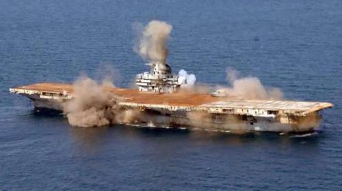 为了凸显这种腔调的可行性,美国一方面不惜对自己的航母打击群痛下杀手,肢解了大量还具有一定作战能力的航母舰只,著名的美国号航母,便是在这时候被美国炸沉的。