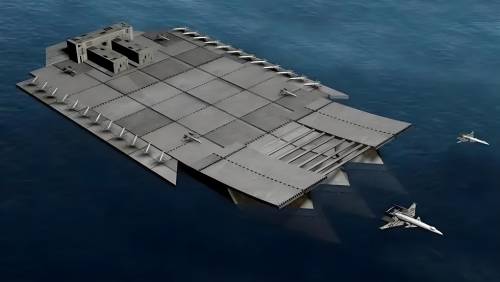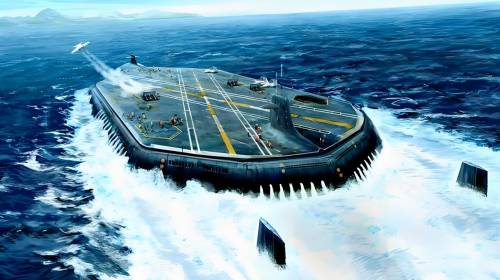 浮岛式航母是一种由大型浮动平台构成的航母替代品,具有建造成本低、排水量大、可搭载大量舰载机等优点。