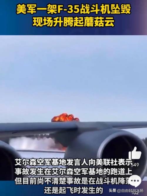 大年初一,美国空军驻阿拉斯加艾尔森空军基地354战斗机联队的一架F-35A战斗机坠毁,给中国人民拜年了。
