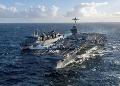 根据报道今年1月中旬,美军航母“卡尔·文森”号就率领着一支编队闯入我国南海,并在1月17日和18日两天,和菲律宾海军举行了一场联合演习,根据报道,本次“卡尔·文森”号航母打击群的配置相对完整:除了航母外,还包括1艘“提康德罗加”级巡洋舰,3艘“阿利·伯克”级驱逐舰,总体作战能力远高于以往美军的航母编队。而且根据报道,在我国整个春节期间,美军航母编队一直在南海活动,对我们示威的意图非常明显。