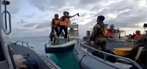 在以德“斧”人的同时,我方装备了海上救生服,还佩戴了头盔,说明这些年还没碰到能破规矩的人,没有出现我方人员扛着斧头急急忙忙往回撤的景象。