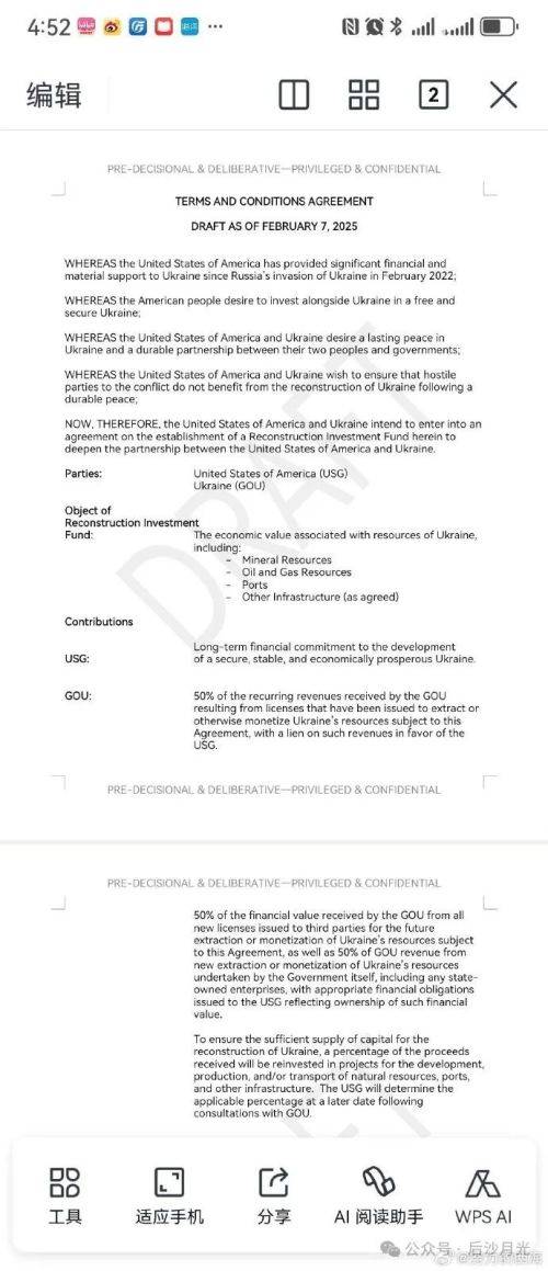 据英国《经济学人》昨天透露,美国财政部长贝森特在慕尼黑只给了泽连基斯一个小时时间,让他把草案过目一下,然后签掉。