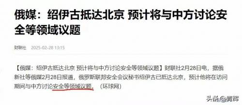 绍伊古这次来到我国,主要讨论的是安全领域问题。在这个时候和我国讨论安全领域的相关议题,这说明地区局势应该是发生了一定的变化。