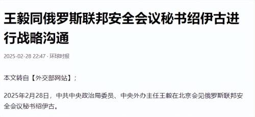 绍伊古先是与王毅外长举行了会谈,双方就乌克兰危机深入交换意见,俄方介绍了俄美接触最新情况和俄方立场考虑,中方表示将继续为劝和促谈发挥建设性作用。