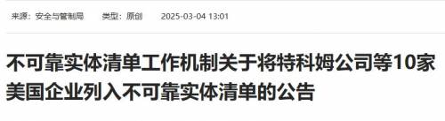 【中方将10家美国实体列入“不可靠实体清单”,禁止这些企业与中国进行贸易往来】