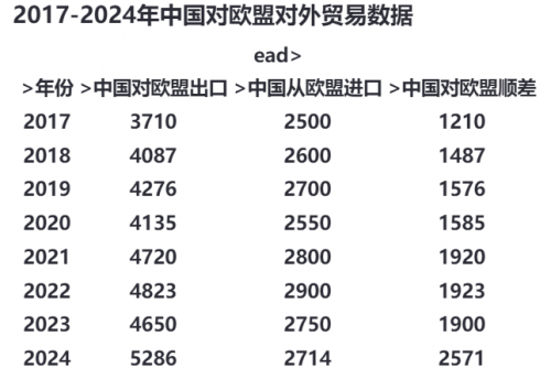 2024年,中国对欧盟和美国都出口了5000多亿美元的商品,然后对美国进口了1714亿美元,对欧盟进口了2714美元,这两家合起来给中国贡献了超过7000亿美元的顺差,约占中国2024年取得的总顺差7679亿美元的92%。