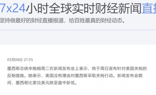 3月4日夜间,墨西哥总统表示将于周日宣布对美国关税的反制措施。
