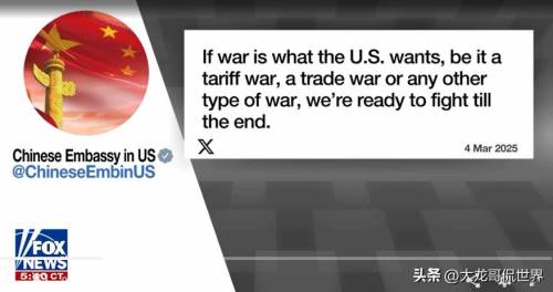 值得一提的是,皮特·赫哥塞斯说出此话的背景是:针对特朗普对中国进口产品征收的关税从 10% 翻倍至 20%的敌对举动,中国于周二晚间宣布:美方如果别有所图,执意打关税战、贸易战或者别的什么战,中方将奉陪到底。