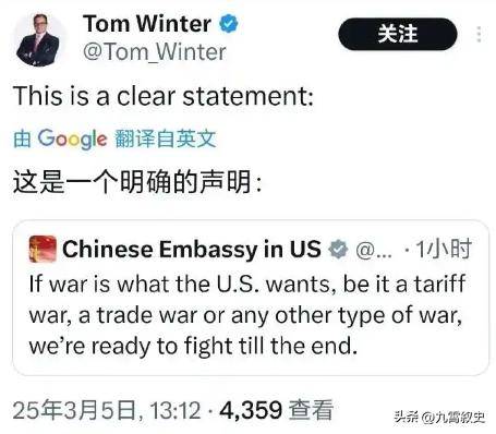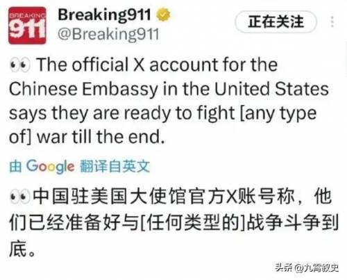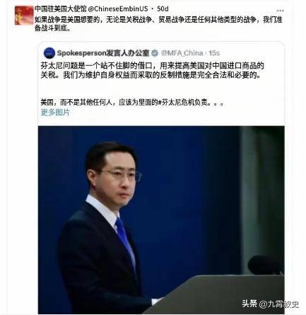 中国驻美大使馆将“奉陪到底”等强硬表态直译为英文发布,迅速登上《华盛顿邮报》《华尔街日报》等主流媒体头条。
