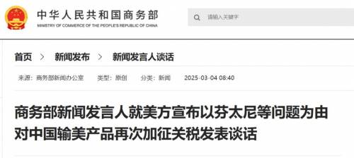 3月3日,特朗普政府以所谓的“芬太尼等问题”为由,宣布自3月4日起对中国输美产品再次加征10%的关税。