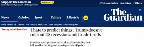 【特朗普不排除贸易关税导致美国经济衰退的可能性】