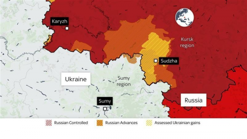 ▲俄军近期发动的库尔斯克攻势(图片来源:天空新闻)