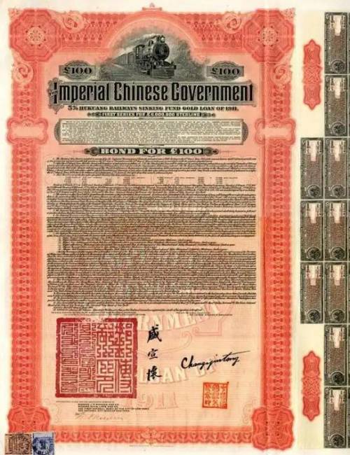 为了搞点基础设施建设,清政府修一条湖广铁路,连接湖北、湖南和广东,想想,可钱从哪里来呢?朝廷没习惯,只能向国际市场伸手,发放了这批债券。当时美国、英国、法国、德国都参与了认购,美国人尤其积极,买了600万英镑中一大块。