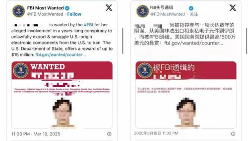 据悉,美方指控四名中国公民利用在中国开设的公司,将美国的军事装备和无人机技术转交给伊朗。目前,在美国互联网上,这几位中国公民的基本信息已经曝光,包括所在地,联邦调查局还对他们发出通缉令……不得不说,美国的所作所为才更像“恐怖主义”。