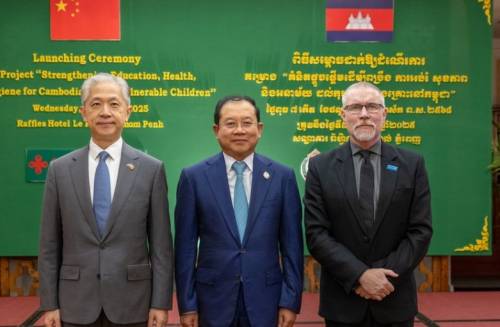 据《柬中时报》报道,3月5日,柬埔寨政府与中国政府及联合国儿童基金会(UNICEF)宣布携手推进合作项目,改善柬埔寨最弱势儿童的包容性优质教育、健康、营养及卫生条件。中国驻柬埔寨大使汪文斌表示,希望通过该项目让柬埔寨最脆弱社区的儿童感受到中国人民的关爱。
