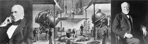 贝塞麦(左)、卡内基(右)和使用贝塞麦炼钢法的工厂(中)
