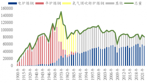 150年间美国粗钢产量全球占比变动情况数据来源:五矿经研院