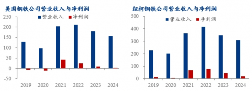 美国钢铁公司与纽柯钢铁公司六年营收与净利润图表来源:Mysteel