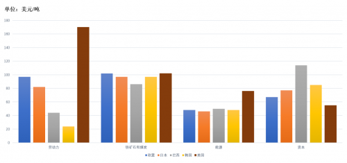 1984年美国与欧日巴韩各自吨钢投入成本对比数据来源: 上海钢联研究中心转引自AdamsandMueller(1986,107)