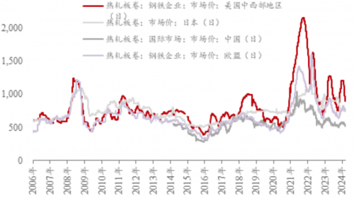 美国钢材价格与中欧日对比(单位:美元/吨)图片来源:钢联数据