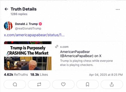 中国对美国宣布了组合拳式的反制,对美加征34%的关税。而后,特朗普有点反应过度,1小时内连续在个人社媒上发3条贴文,中国没有回应后,再次发推,表示, 中国反制不应该,令人无法接受;中国遭受的损失会比美国多得多, 他称:这对美国来说是一场经济革命,虽然这会很不容易,但是我们美国会坚持住,而结果一定会被载入史册。