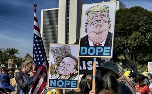 此外是、当地时间4月5日,全美超过1000多个城市,爆发了1200场大规模游行示威与反特朗普抗议,包括华盛顿、纽约、波士利顿、芝加哥和洛杉矶等人潮汹涌,在华盛顿大量团体冲到了联邦大楼门前。人们喊着:“让特朗普下台!”、“放手”等标语。